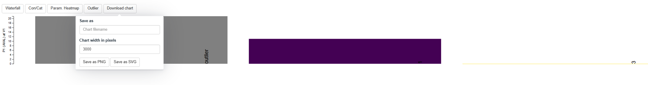 The download chart menu allows to save a configuration of visualisations to your local environment, as a .png or .svg file.