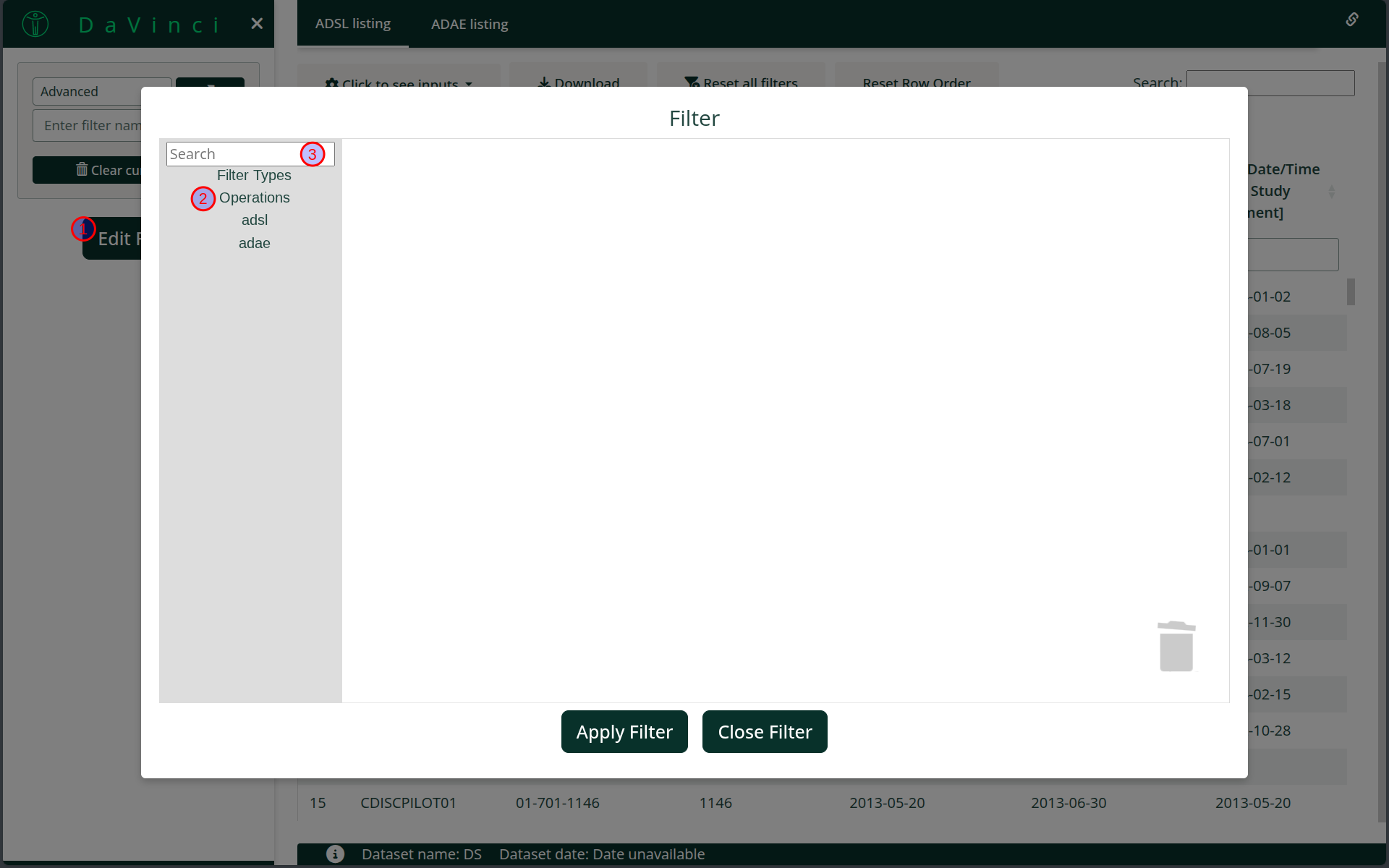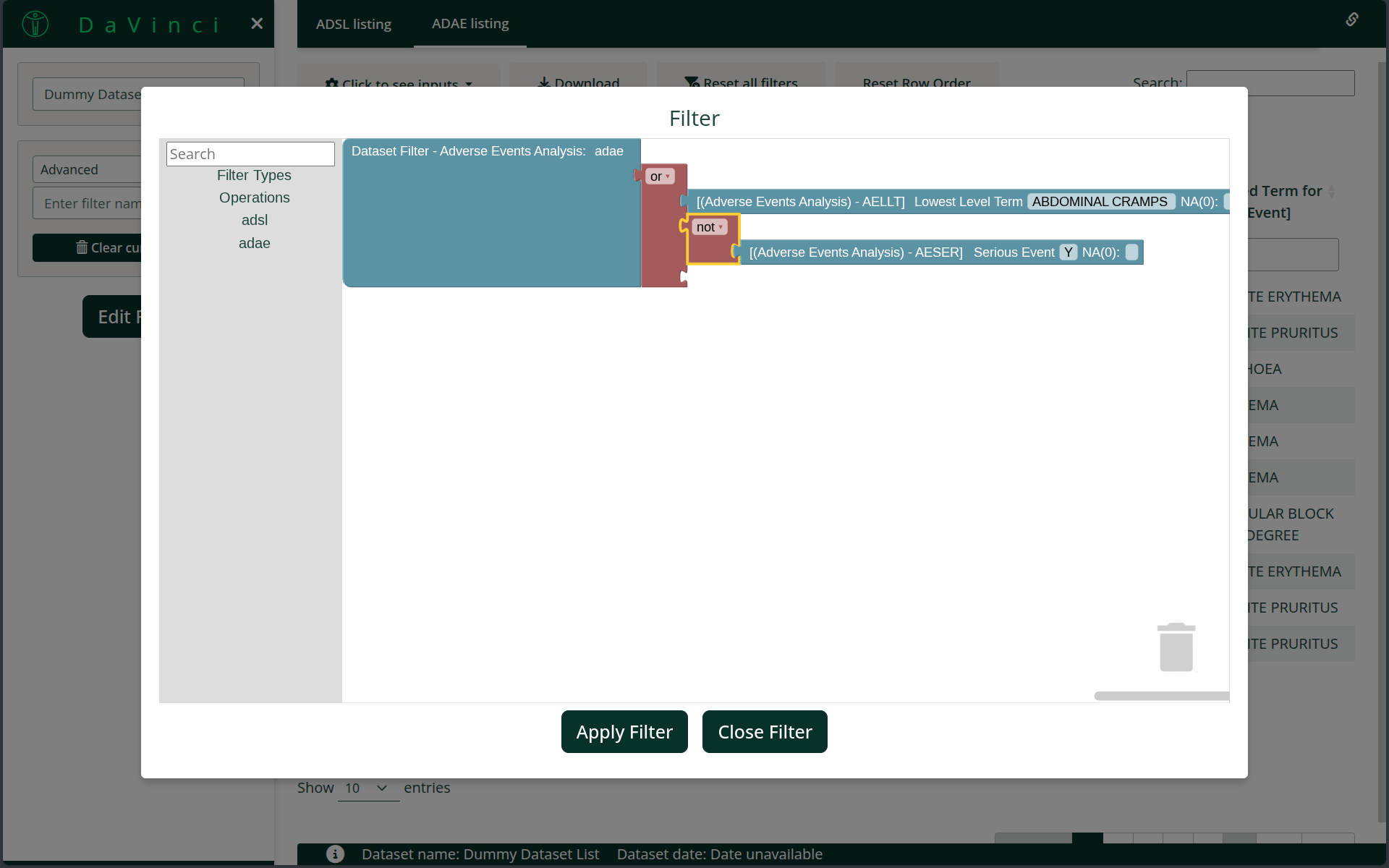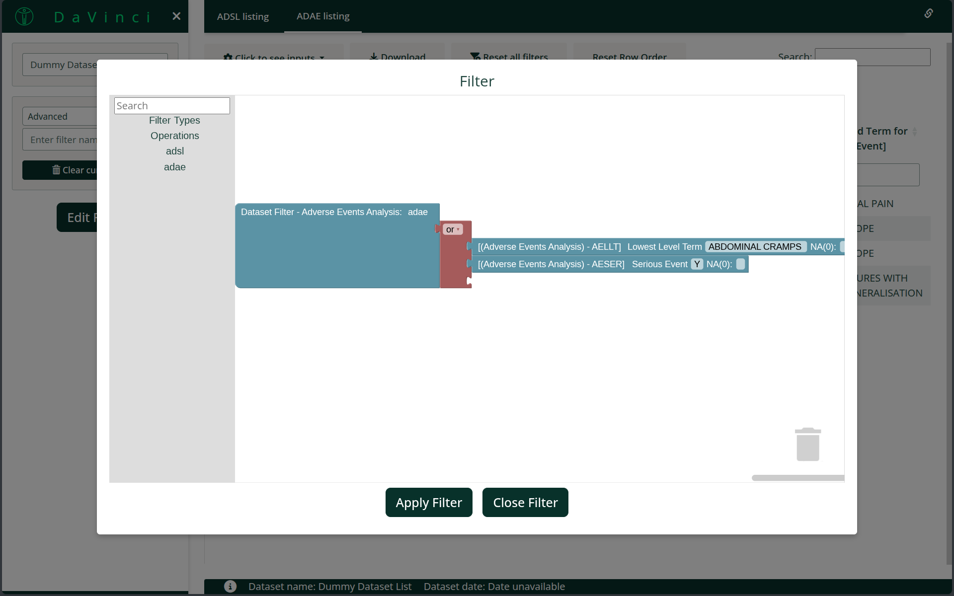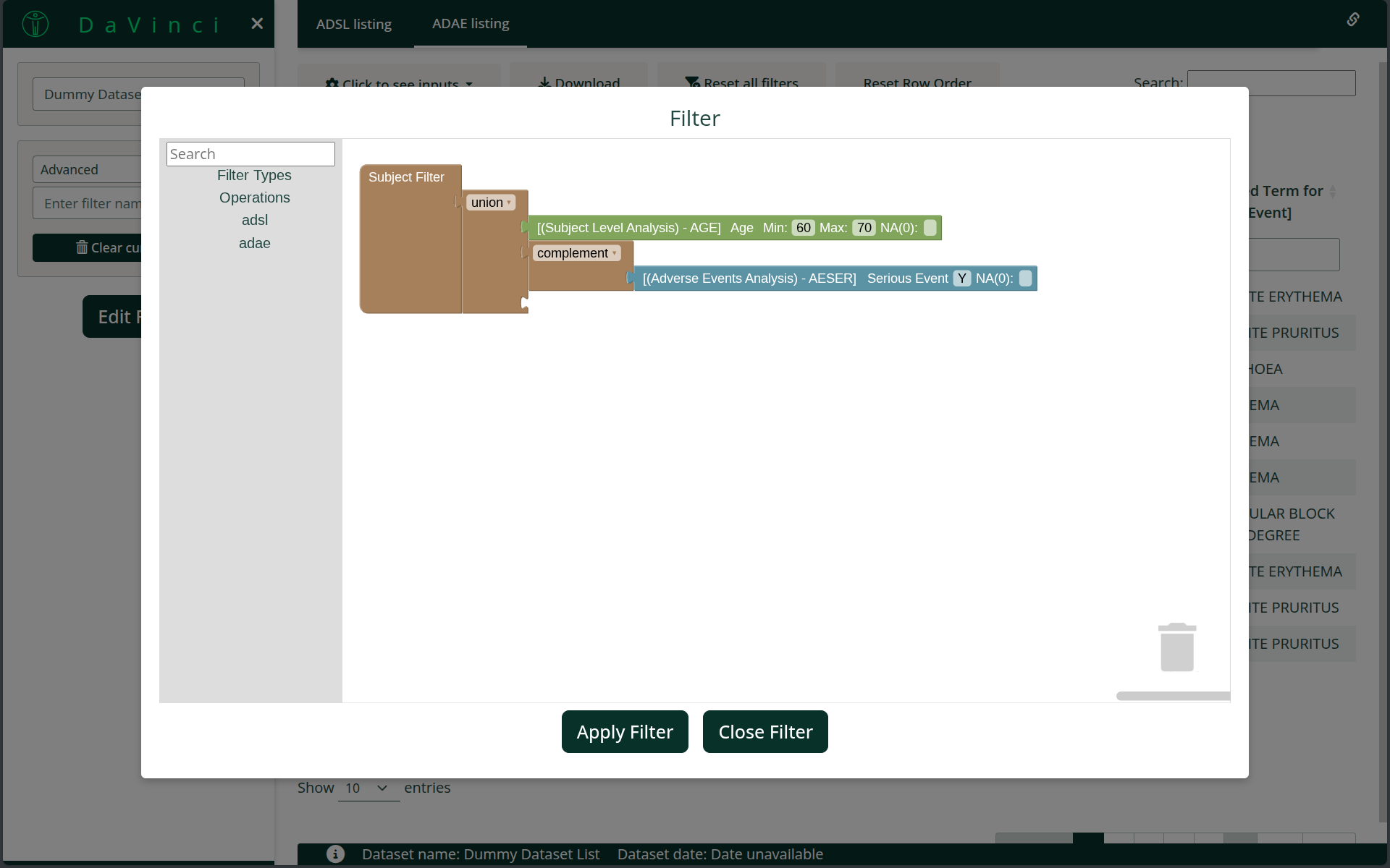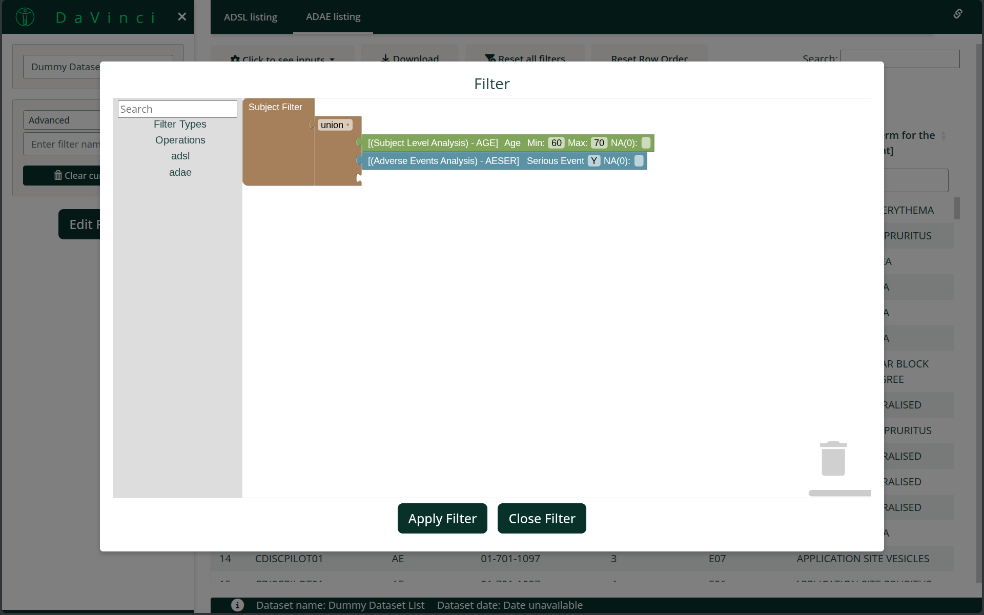 adaedataset.Apply a dataset filter to the