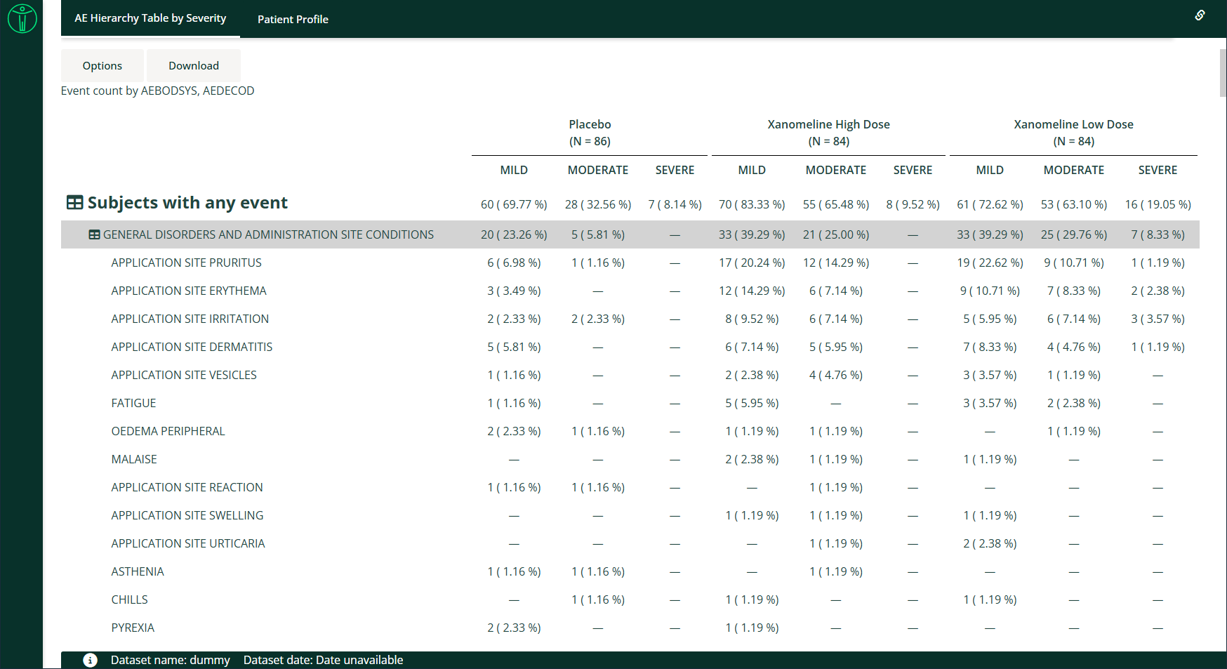 "AE Hierarchy Table by Severity" = dv.tables::mod_hierarchical_count_table(